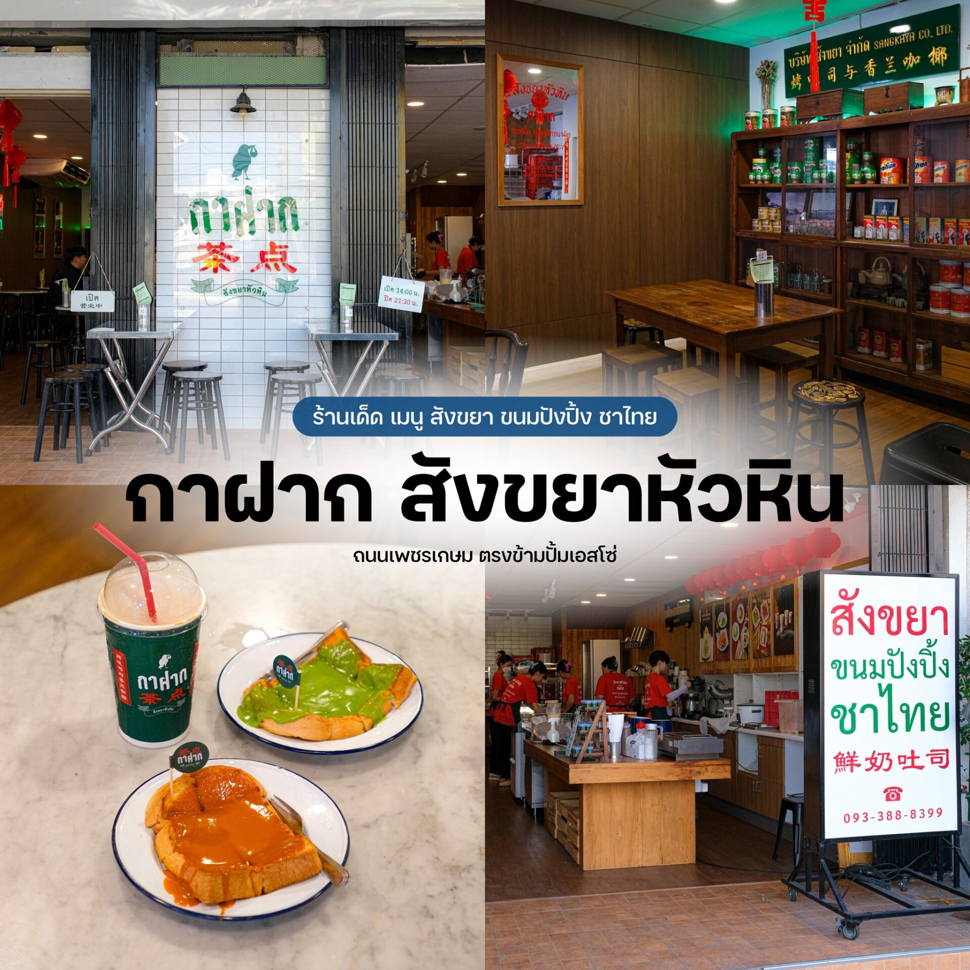 🍞 “กาฝาก สังขยาหัวหิน” เป็นอีกร้านสำหรับสายหวานที่มาหัวหินแล้วไม่ควรพลาด เมนูเครื่องดื่มโดนเด่นคือ ชาไทยปั่น รสชาติดี เข้มข้น ไม่หวานมาก ตามมาด้วยขนมปังปิ้งท็อปด้วยชาไทย และสังขยาใบเตย ที่บอกเลยว่าเข้มข้น หอมฟุ้งละมุนสุดๆ นอกจากนั้นยังมีเมนูอื่นๆให้เลือกอีกเพียบ บรรยากาศภายในร้านก็ตกแต่งได้สวย มีมุมถ่ายรูปด้วย แล้วอย่าลืมแวะมาลองกันนะคะ 💚