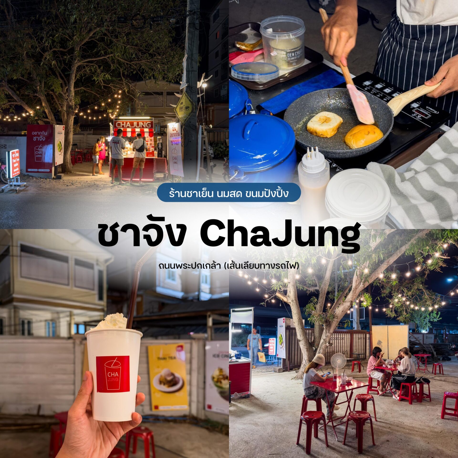 🥤 ใครเป็นสายชาไทย ปักหมุดไว้เลย กับร้านนี้ “ชาจัง ChaJung” เป็นร้านชาที่พึ่งเปิดได้ไม่นาน ร้านตกแต่งได้น่ารักมากกก ขับผ่านแล้วสะดุดตาจนต้องแวะให้ได้ เมนูของที่ร้านจะมีทั้งชาไทยเย็น และสเลอปี้ชาไทยปั่น รสชาติหอมกลมกล่อมเลย และเครื่องดื่มอื่นอย่าง นมสดเย็น-ร้อน นอกจากนั้นยังมีเมนูขนมปัง มีให้เลือกทั้งแบบโทสต์ ขนมปังลูกชิ้น และไอศครีมก็มีนะ ไส้ก็จะมีให้เลือกทั้ง สังขยาชาไทย สังขยาใบเตย ช็อคโกแลต และคาราเมลนมข้น ถือว่าตอบโจทย์สายหวานสุดๆ 💙