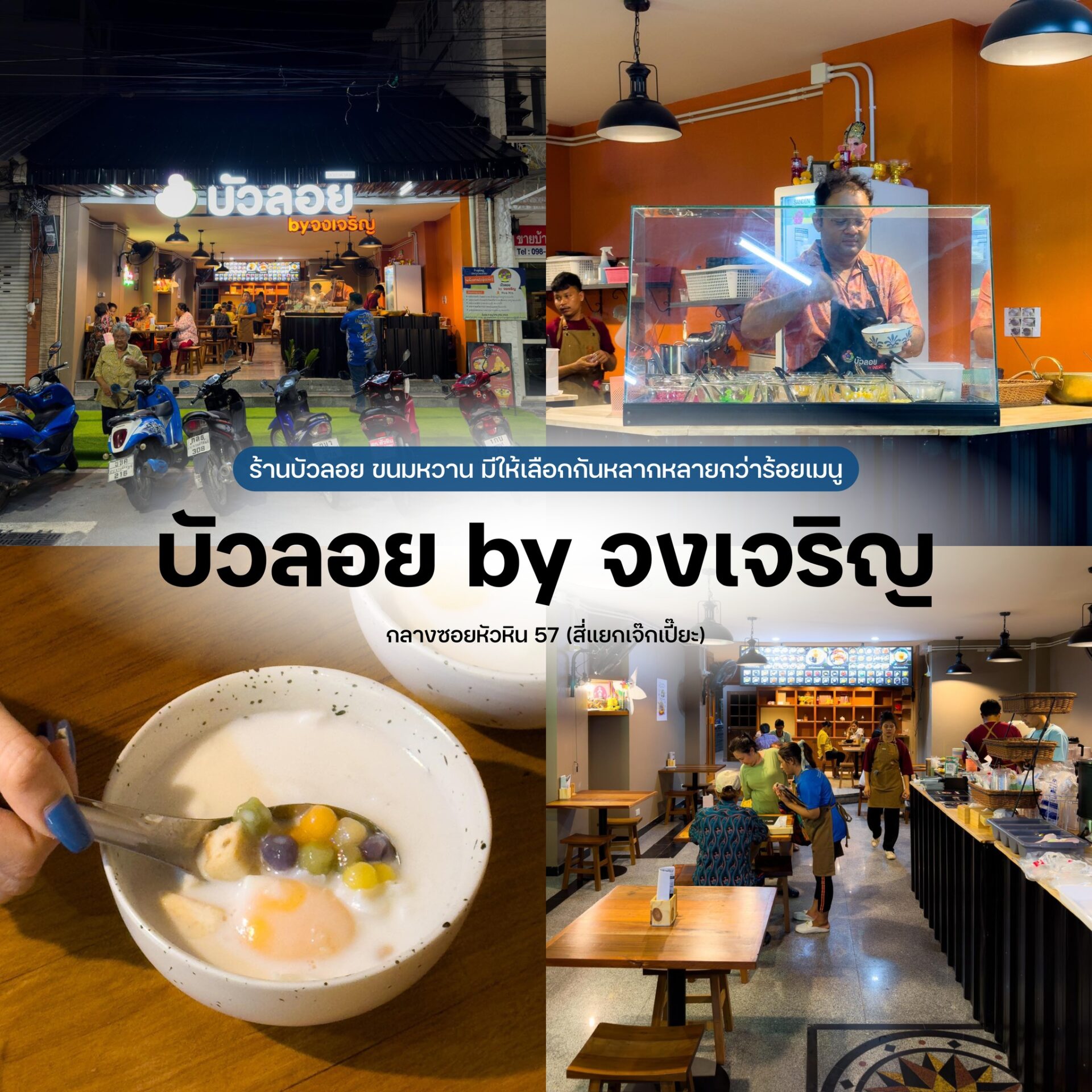 🍧 “บัวลอย by จงเจริญ สาขาหัวหิน” เป็นอีกร้านบัวลอยเจ้าดัง ที่มีเมนูของหวานแบบไทยๆให้เลือกกันหลากหลายกว่าร้อยเมนู รสชาติดีไม่ผิดหวังแน่นอน ส่วนบรรยากาศร้านถือว่าตกแต่งได้สวยเลย มาถ่ายรูปชิคๆได้อีกด้วย ใครทานมื้อเย็นเสร็จแล้ว อย่าลืมแวะมาต่อของหวานที่นี่กันได้เลย 🧡