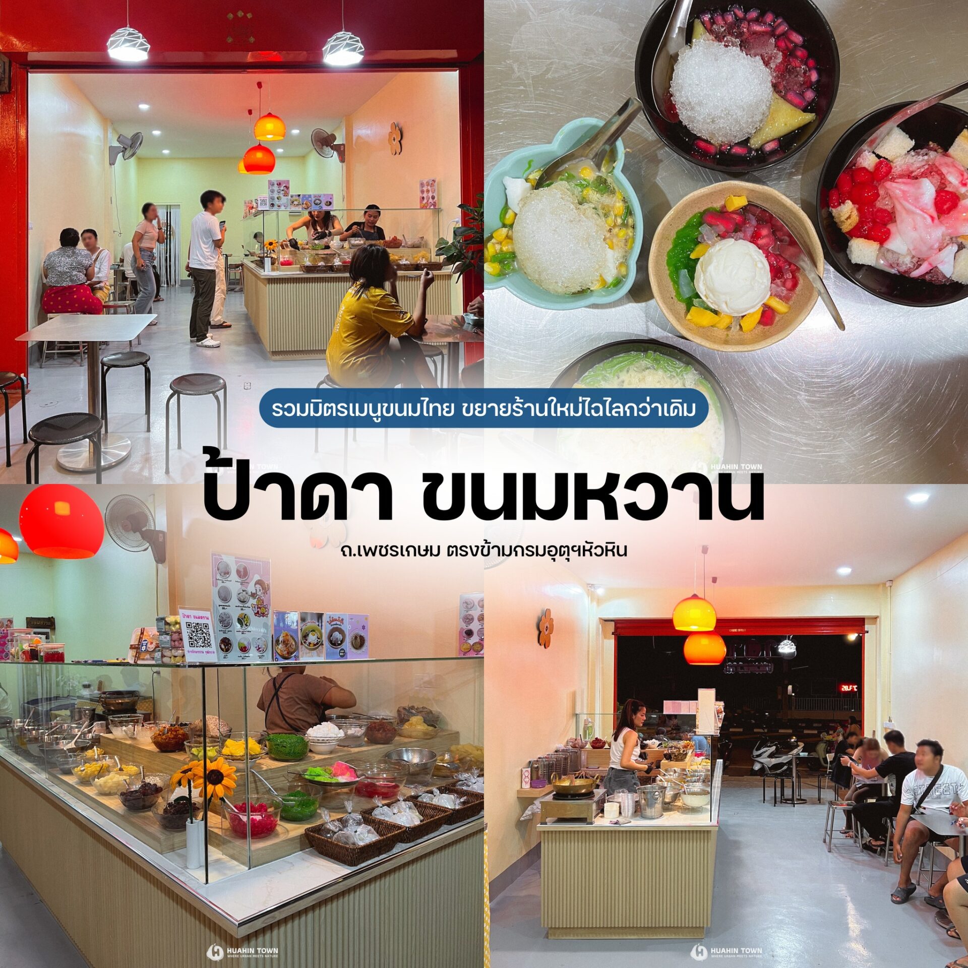 🍧 รวมมิตรเมนูขนมไทย กับ “ป้าดา ขนมหวาน” ร้านขนมหวานเจ้าเก่าของหัวหินที่หลายคนน่าจะคุ้นชื่อกันดี ตอนนี้ย้ายมาเปิดร้านใหม่อยู่ตรงข้ามกรมอุตุฯหัวหินค่ะ เป็นร้านเล็กๆโปร่งโล่งสบาย มีโต๊ะนั่งกินมากขึ้น ส่วนเมนูก็ยังมีให้เลือกครบครันเหมือนเดิมค่ะ ไม่ว่าจะรวมมิตรของหวานต่างๆ ทับทิมกรอบ ลอดช่อง ซาริ่ม ข้าวเหนียวสามเหลี่ยม มะพร้าว แห้ว ข้าวเหนียวทุเรียน ฟักทองเชื่อม ฯลฯ บอกเลยว่าแต่ละเมนูหอมหวานชื่นใจสุดๆ 😍 ️