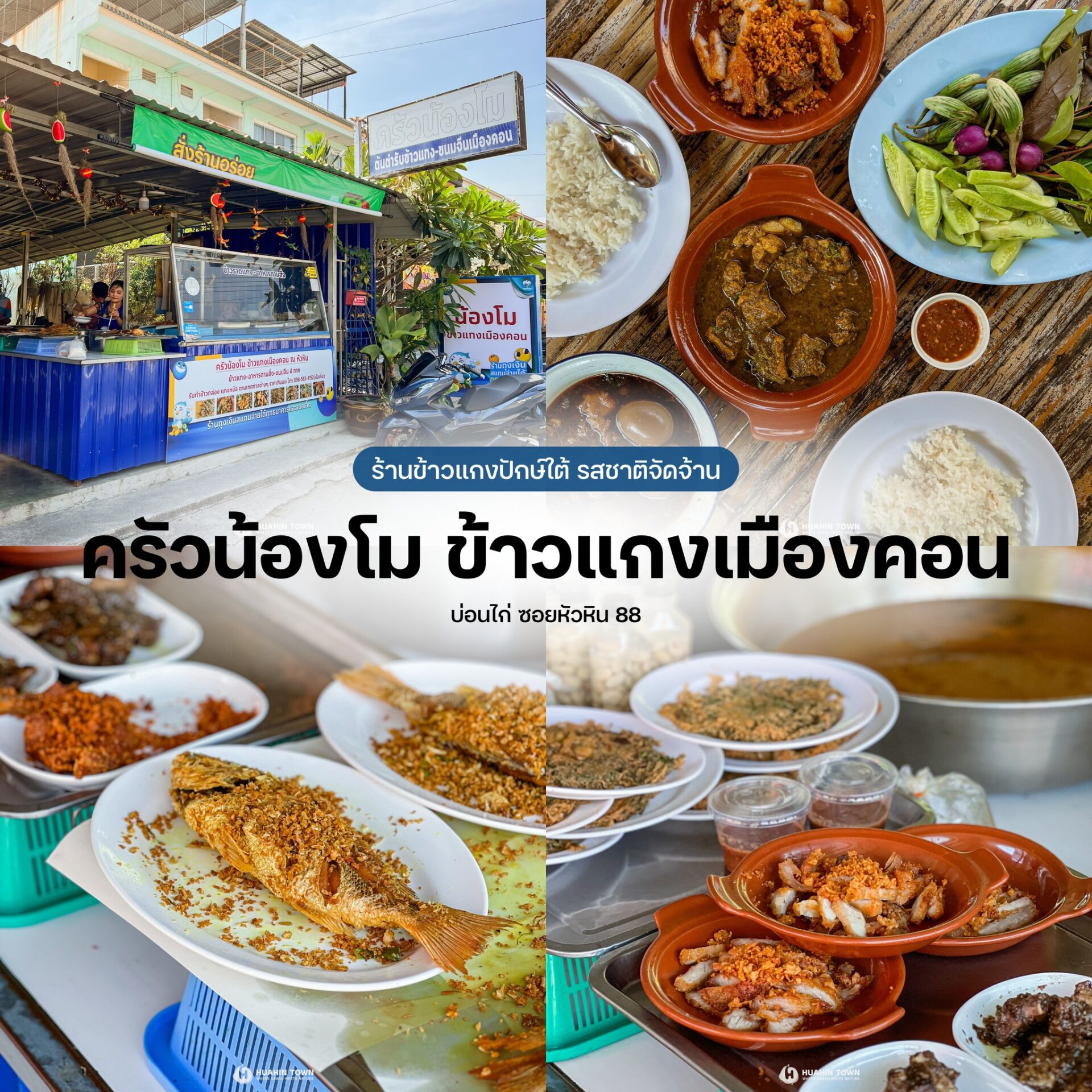 ใครกำลังมองหาข้าวแกงรสชาติจัดจ้านในหัวหิน เราแนะนำที่นี่เลย “ครัวน้องโม ข้าวแกงเมืองคอน” เป็นร้านข้าวแกงปักษ์ใต้ตั้งอยู่ย่านบ่อนไก่ ซอยหัวหิน 88 ค่ะ ที่นี่มีทั้งแบบราดข้าว กับข้าว และบุฟเฟต์ขนมจีน ที่สำคัญน้ำพริกผักฟรี! มื้อกลางวันนี้ใครยังไม่มีเมนูในใจ แวะไปชิมกันนะคะ รับรองว่าเข้มข้นถึงใจ ![]()