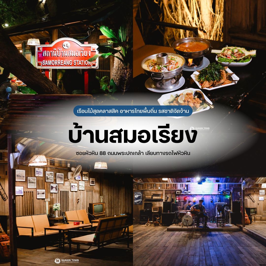 ร้านอาหารไทยพื้นถิ่น รสชาติจัดจ้าน “บ้านสมอเรียง” ตัวร้านตั้งอยู่ถนนพระปกเกล้า เลียบทางรถไฟหัวหินค่ะ ด้านในบรรยากาศสบายๆ เป็นเรือนไม้สุดคลาสสิค มีโซนที่นั่งให้เลือกหลากหลาย มาพร้อมดนตรีสดบรรเลงเพลงสนุกๆยาวตลอดทั้งคืน ที่นี่มีทั้งเมนูอาหารและเครื่องดื่มให้เลือกหลากหลายค่ะ “ปลาทูคั่วพริกเกลือ” หนึ่งในเมนูแนะนำของทางร้าน ปลาทูทอดมากรอบๆคลุกเคล้ากับพริกกระเทียมหอมๆ จะทานเป็นกับข้าวหรือกับแกล้มก็อร่อยลงตัว ส่วนเมนูอื่นๆก็รสชาติดีไม่แพ้กันค่ะ ไม่ว่าจะเป็น แกงส้มปลาเก๋าออดิบ ไก่ทอดซอสครีมมะนาว ไข่ตุ๋นทะเลหม้อไฟ ยำหมูย่างสับปะรด ตบท้ายด้วยไส้กรอกอีสาน ที่เสิร์ฟมาใส่แก้วช็อตสวยงาม ภายในร้านกว้างขวาง โปร่งโล่งสบาย มีพื้นที่รองรับหลากหลายโซน ใครกำลังมองหาร้านอาหารรสชาติดีๆยามค่ำคืน ร้านนี้ไม่ผิดหวังค่ะ ![]()