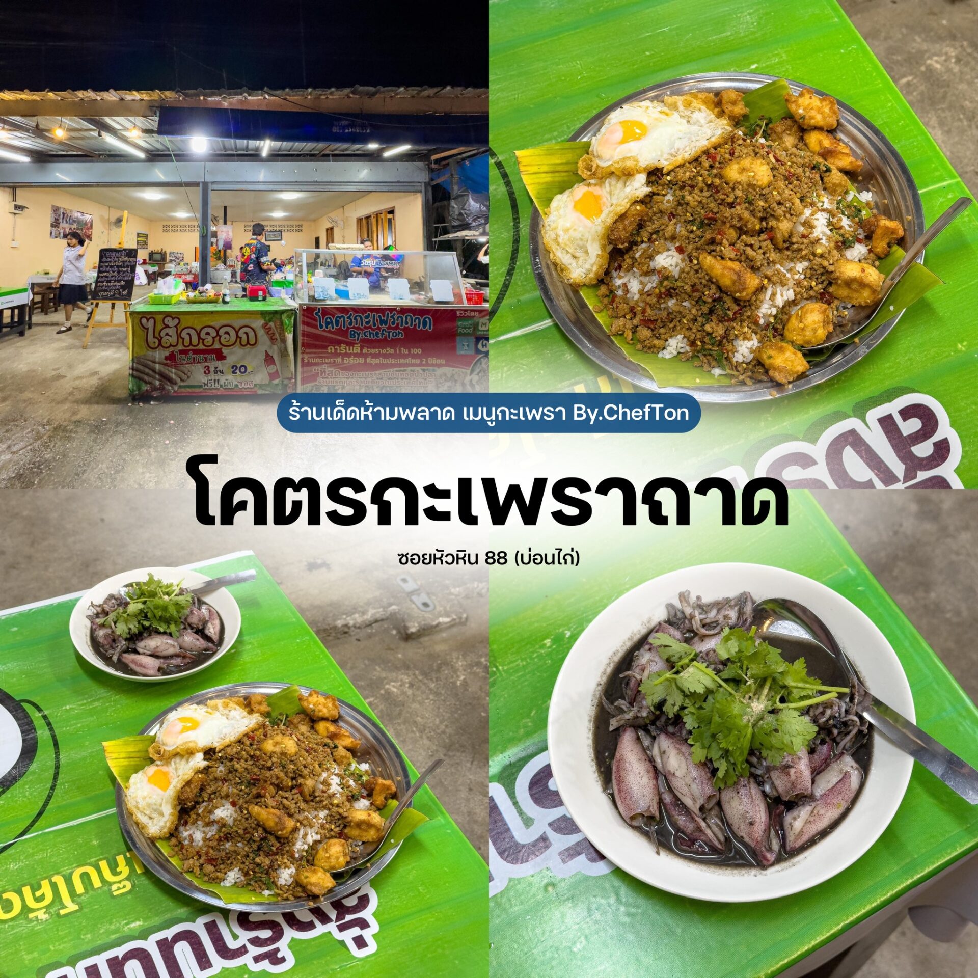 ใครที่ชื่นชอบเมนูกะเพรา ต้องมาโดนร้านนี้ “โคตรกะเพราถาด By.ChefTon” ถือว่าเป็นอีกร้านที่จะไม่ทำให้ผิดหวัง ร้านมีเมนูให้เลือกหลากหลาย สามารถเลือกผสม หรือจะเพิ่มพิเศษกับวัตถุดิบอื่นๆก็ได้เช่นกัน มีเสิร์ฟแบบจานไซส์ปกติ หรือจะเสิร์ฟใส่ถาดแบบจุกๆก็มี จะสั่งไซส์ไหน รับลองว่าอร่อยเหมือนกัน รสชาติไม่ลดลงแน่นอน นอกจากนั้นยังมีเมนูทะเลอื่นๆ ทั้งปู หมึก กุ้ง อย่างต้มยำหมึก หมึกผัดพริกเกลือ หมึกผัดน้ำดำ และอื่นๆอีกเพียบ บอกเลยว่าหมึกสดมากกก เพราะทางร้านออกเรือหาหมึกเอง รับประกันความสดได้เลย ถือว่าเป็นอีกร้านที่รับรองว่าอิ่มแล้วอร่อยด้วย มาแล้วไม่ผิดหวัง ไหนใครหิวแล้วก็อย่าลืมแวะมาลองกันนะคะ ![]()