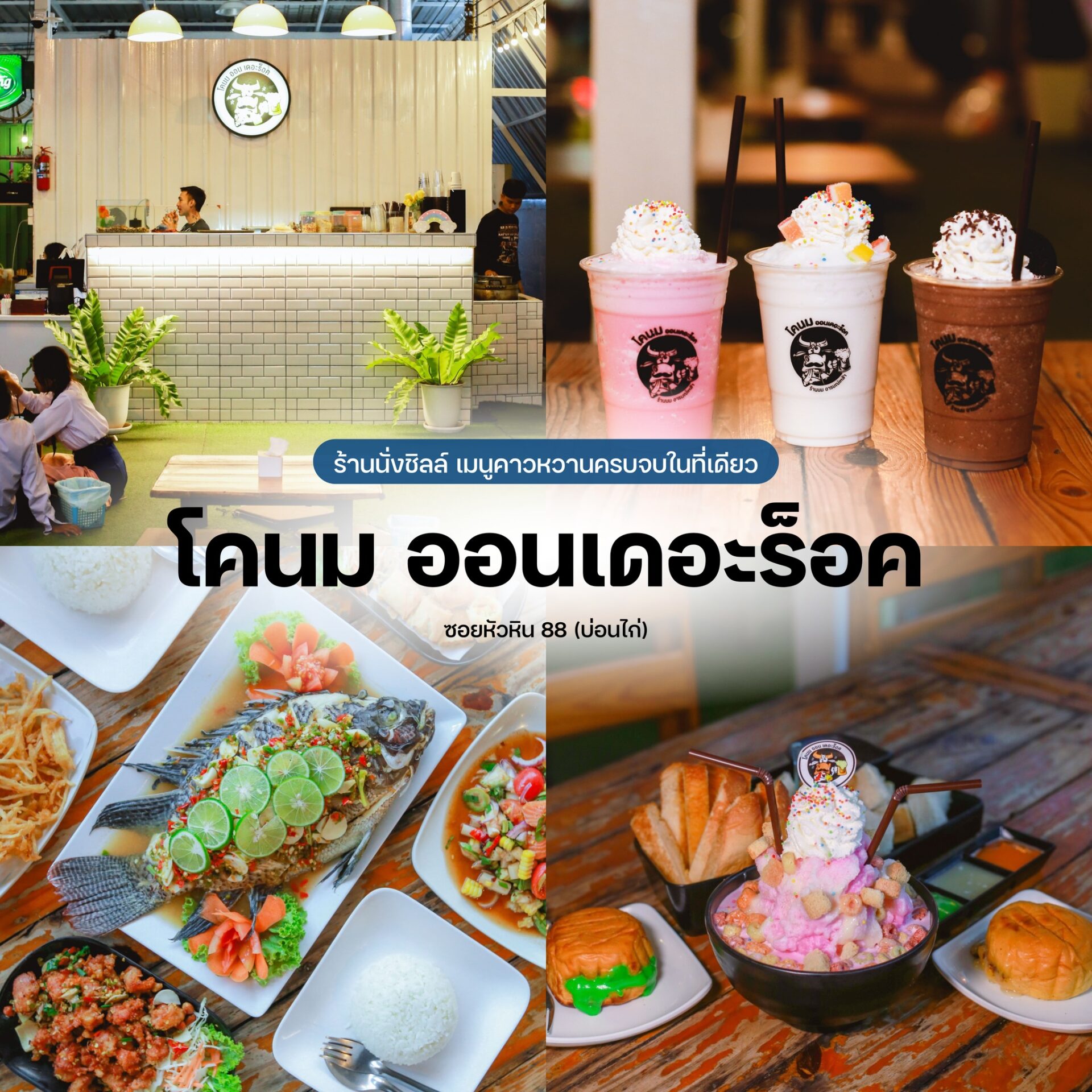 ร้านนั่งชิลล์ๆ ที่มีเมนูของคาวหวานแบบครบจบในที่เดียว กับ “โคนม ออนเดอะร็อค” ตัวร้านตั้งอยู่ย่านบ่อนไก่ ซอยหัวหิน 88 เมนูของที่นี่มีครบทั้งอาหารคาวหวานเลยค่ะ ไม่ว่าจะเป็น อาหารจานเดียว จิ้มจุ่ม ปังปิ้ง ปังเย็น และเครื่องดื่ม ที่นั่งแบ่งสัดส่วนชัดเจน ไม่แออัด บรรยากาศสบายๆ เหมาะแก่การชวนเดอะแกงค์ไปนั่งเม้ามอยเป็นที่สุด ![]()