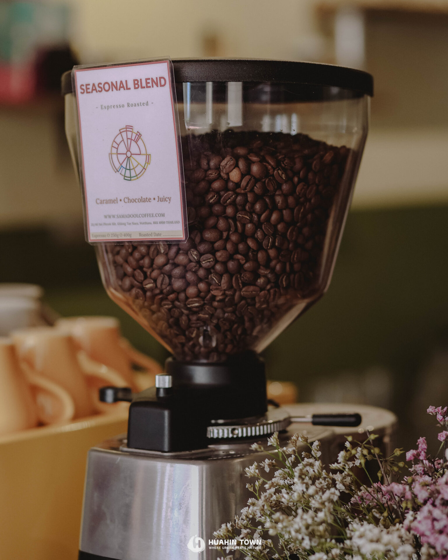 ตัวร้านตั้งอยู่ในซอยหัวหิน 102 ค่ะ เป็นร้านเล็กๆ มีมุมจิบกาแฟเบาๆ แต่บรรยากาศแสนอบอุ่น บาริสต้าใจดี เป็นกันเอง และมีเสน่ห์เฉพาะตัว