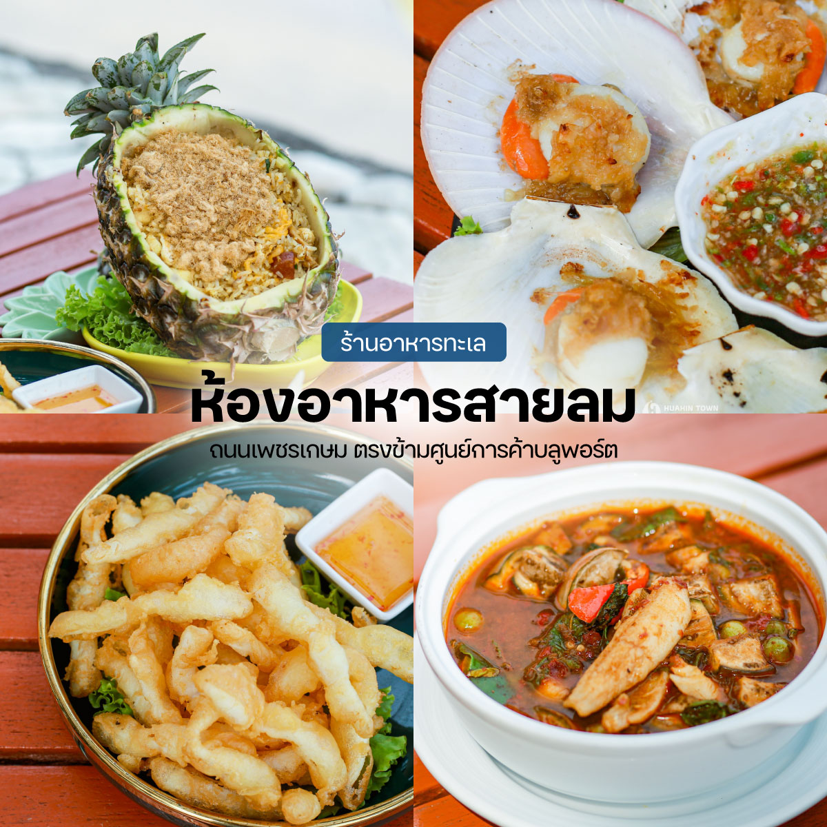 มาเที่ยวหัวหินทั้งที จะพลาดอาหารทะเลดีๆได้ยังไง วันนี้หัวหินทาวน์มี “8 พิกัด ร้านอาหารทะเลหัวหิน” มาแนะนำกันค่ะ แต่ละร้านมีให้เลือกทั้งอาหารทะเล อาหารพื้นถิ่น เลือกใช้วัตถุดิบที่สดใหม่ ปรุงรสชาติออกมาได้อร่อย แซ่บซี๊ด เข้มข้นถึงใจ และที่สำคัญราคาสบายกระเป๋าอีกด้วย จะมีร้านไหนมาแนะนำบ้างไปชมกันเลย ![]()