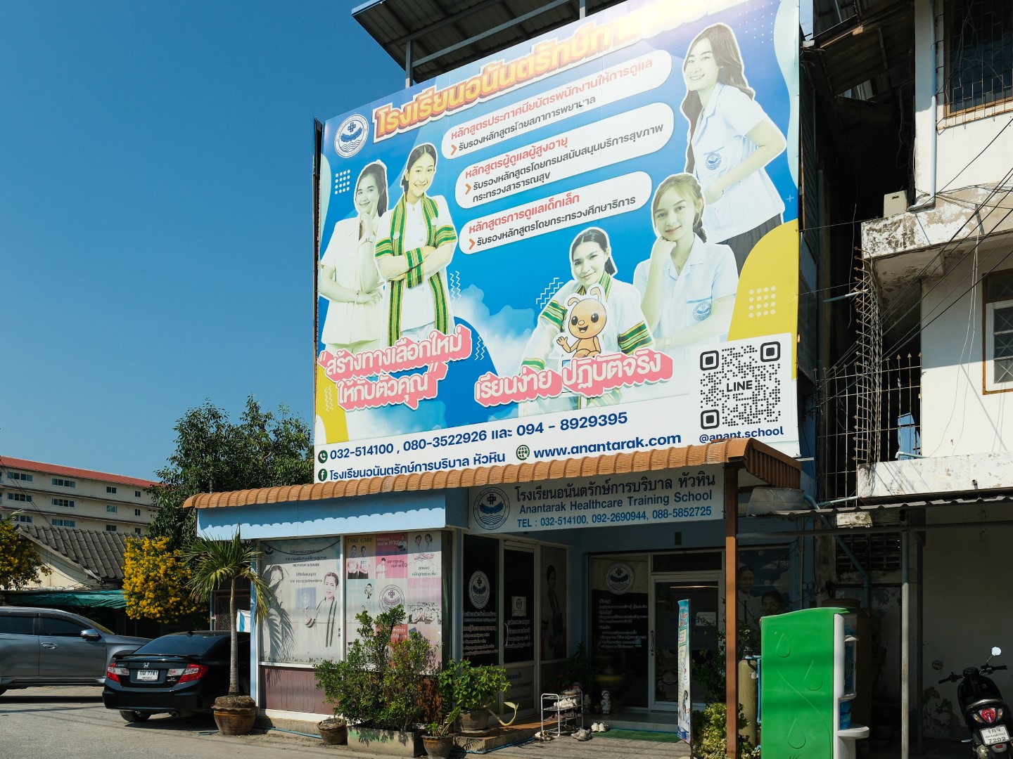 โรงเรียนอนันตลักษณ์บริบาล หัวหิน เปิดสอนหลักสูตรผู้ช่วยพยาบาลและการดูแลผู้สูงอายุ ทั้งระยะ 70 ชั่วโมง, 3 เดือน และ 6 เดือน รองรับทั้งผู้ที่ต้องการประกอบอาชีพและผู้ที่ต้องการดูแลคนในครอบครัว ผู้สนใจสามารถติดต่อสอบถามรายละเอียดได้โดยตรงที่โรงเรียน