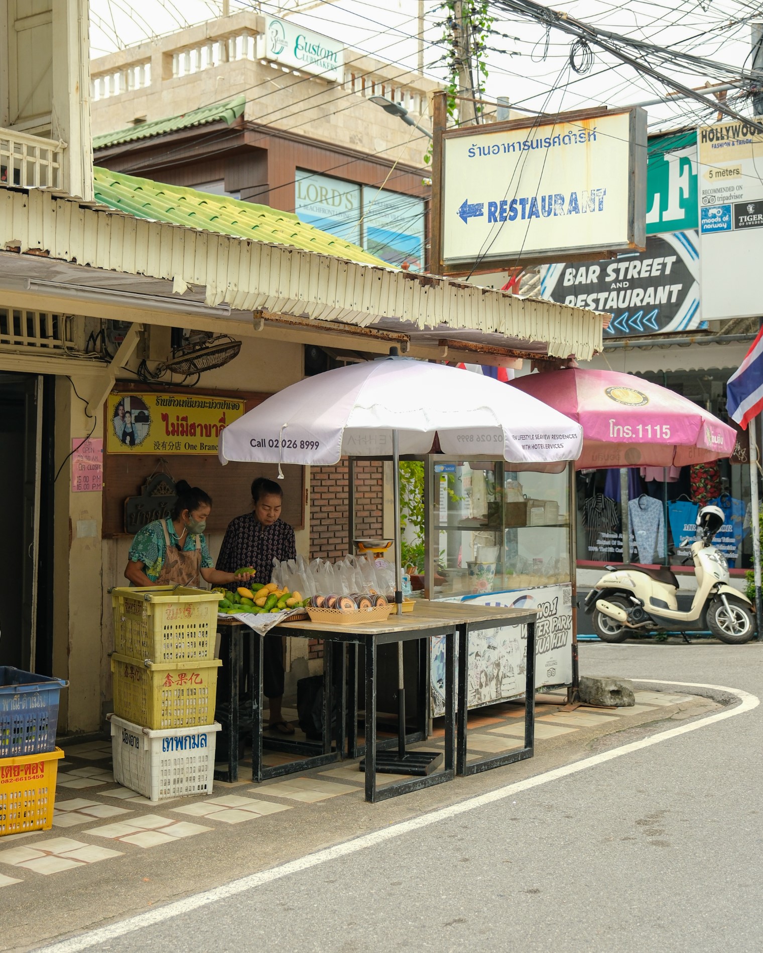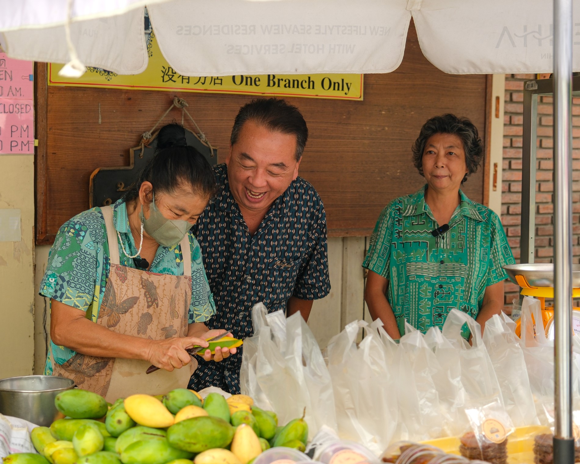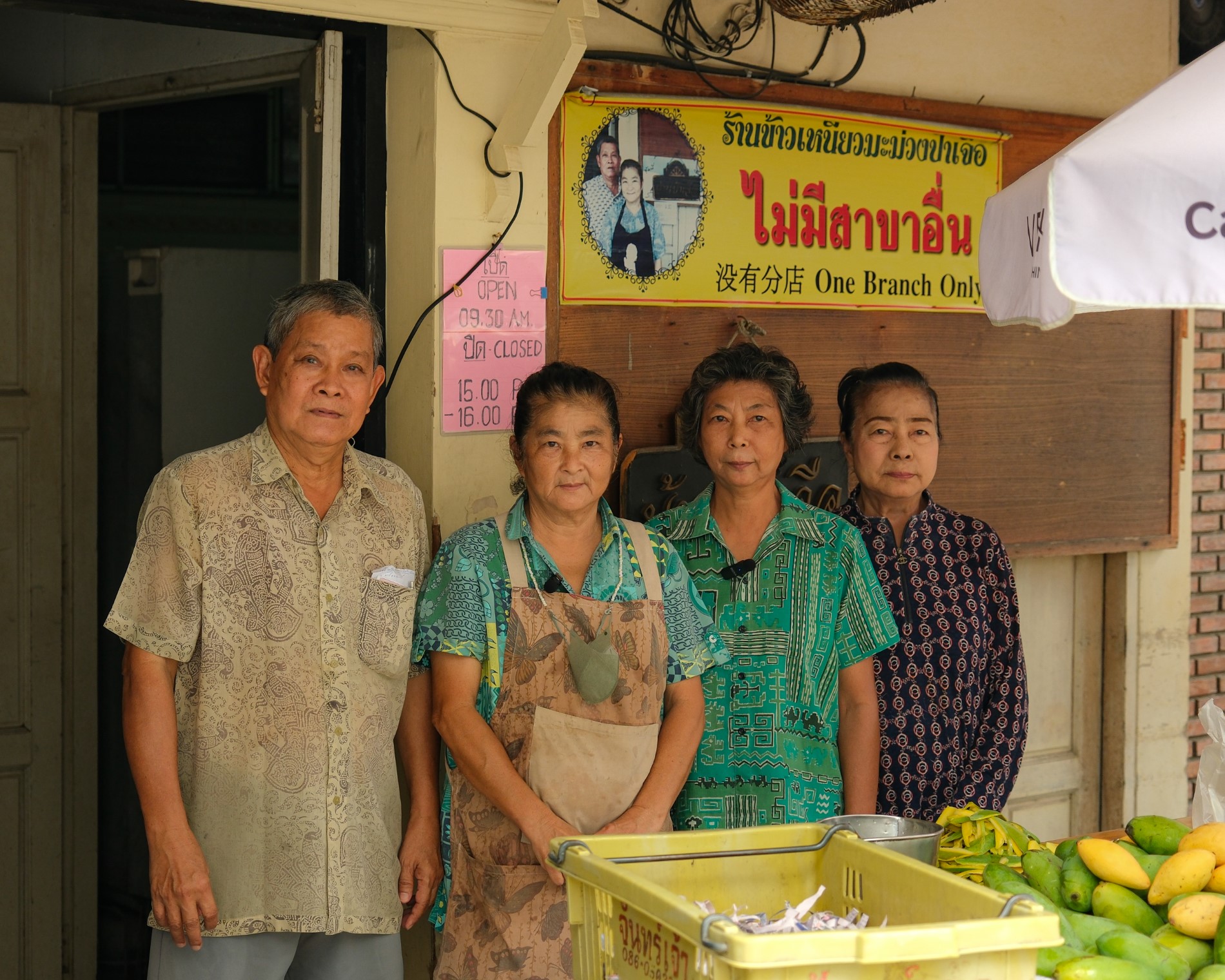 ย้อนเวลากลับไปเกือบ 60 ปีก่อน ตอนนั้นถนนเส้นนี้ยังเป็นชุมชนไม้เก่า ๆ และพื้นที่บางส่วนยังเป็น “วังจักรพงษ์” พี่อ้อยเล่าว่า “ตั้งแต่จำความได้ ร้านก็อยู่ตรงนี้แล้ว คุณแม่เป็นคนเริ่มต้นขายเองเลย ตอนแรกขายเฉพาะช่วงมะม่วงออกปีละไม่กี่เดือน พอหมดฤดูก็เปลี่ยนไปขายอาหารตามสั่งแทน”